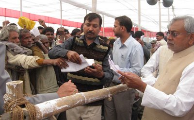 पटना। मुख्यमंत्री नीतीश कुमार क दोसर कार्यकालक पहिल जनता दरबार। आशाक अनुरूप भीड। दूर-दराज़ स पहुंचल लोक। एक दर्ज़न स बेसी विभाग क मामला क सुनवाई। संबंधित विभागक अधिकारी आ मंत्री अपन-अपन जगह पर आसीन, मुदा मुख्यमंत्री नीतीश कुमार अलग अंदाज़ मे। ओ अपन निर्धारित स्थान पर जेबाक बदला मे सीधा सड़क पर जा लाईन मे लागल दूर-दराज स आयल गरीब असहाय लोक क अरजी अपन हाथ स ल समस्याक निराकरण लेल ओतहि स निर्देश दिए लगलाह। एहन पहिल बेर भेल जखन, मुख्यमंत्री पिछला 5 साल मे अपने कतारक अंतिम लोक लग जा आवेदन लेलथि।