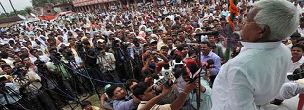 राजद अध्यक्ष बिहार क वर्तमान सरकार कए सब मोचा पर विफल करार दैत कहला जे पूरा राज्य सूखा क चपेट मे अछि आ सरकार किसान क कोनो सहायता नहि केलक। ओ कहला जे मुख्यमंत्री पिछला चुनाव मे बिजली क उत्पादन बढेबाक आ उद्योग-धंधा लगेबाक वादा केने छलाह मुदा बिहार मे पिछला पांच साल मे एक मेगावाट अतिरिक्त बिजली क उत्पादन नहि भेल अछि आ ने कोनो उद्योग-धंघा लागल अछि। ओ कहला जे नीतीश उद्योग धंधा क नाम पर हर पंचायत मे शराब क दुकान जरूर खुलवा देलथि अछि। यादव राज्य सरकार पर दलित कए बांटबाक आरोप लगबैत कहला जे मुख्यमंत्री महादलित कए जमीन, इंदिरा आवास, रेडियो आ टेलीविजन दैत छलाह मुदा ककरो किछु नहि भेट। ओ कहला जे हुनकर पार्टी सत्ता मे आईल त उच्च वर्ग क लोक कए संग लकए चलताह।