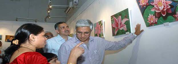 पटनाक तक्षशिला आर्ट गैलरी में लागल अर्चना कुमारी क चित्रकला प्रदर्शनी क अवलोकन करैत मघ्यपूर्व रेलवे क महाप्रबंधक