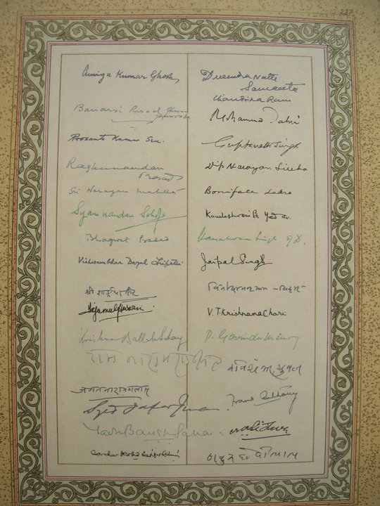 संविधान सभा दिस स पारित भारतक मूल संविधान पर सांसद डा सर कामेश्वर सिंह क हस्ताक्षर