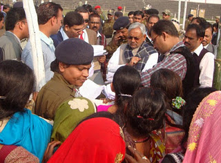 मधुबनी स्टेडियम । हम आएल छी अहां क दरबार मे आवेदन लाउ…..”उगना” क रूप मे मिथिलाक धरती पर आयल ”नीतिश” क इ बोल जनता दरबार मे मुख्यमंत्री कार्यक्रम क पहिल वाक्य छल। अपन सेवा यात्रा क तेसर दिन मुख्यमंत्री नीतीश कुमार भोर करीब दस बजे जनता क समक्ष हाथ जोडि हाजिए भेलाह। सीधा महिला दीर्घा लग पहुंचलाह आ आवेदन लेब शुरू केलथि। महिला स मैथिली मे गप शुरू केलथि। आश्वासन देलथि सबटा काज होएत। हमरा पर विश्वास अछि ने। महिला कए भरोस दैत कहला जे सरकार त भ्रष्टाचार क खिलाफ कार्रवाई क रहल अछि मुदा अहू सब जागू आ एकर विरोध करू। एहि पर प्रमिला देवी कहैत छथि- सर हमर गाम मे सड़क नहि अछि। आंगनबाड़ी केन्द्र नहि अछि। नीतीश हुनकर आवेदन लैत जिलाधिकारी संजीव हंस कए कार्यवाही करबा लेल कहलथि। फेर आगू बढैत कहला- ‘अंजनी बाबू (मानव संसाधन विभाग क प्रधान सचिव ) कल्पना क मामला देखू।’ कल्पना आरके कॉलेज मे आइएससी क छात्रा छथि। हिनकर शिकायत अछि जे कॉलेज मे पढ़ाई नहि होइत अछि। अगर एहन हालत रहल त गरीब लोक क बचा कोना पढत। किछु महिला कहलथि जे हुनकर मांग मे चारि गोटेक हत्या क देल गेल, पुलिस कोनो कार्रवाई नहि केलक। मुख्यमंत्री तुरंत दरभंगा प्रक्षेत्र क आइजी कए बजेलथि आ कहलथि- ‘गंभीर मामला अछि अविलम्ब कार्रवाई कैल जाए।’