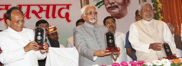 पटना मे प्रथम राष्ट्रपति डॉ राजेंद्र प्रसाद क 47 म पुण्यतिथि क मौका पर डॉ राजेंद्र प्रसाद क स्मृति मे सौ आ पांच टका क सिक्का जारी करैत उप राष्ट्रपति अंसारी।